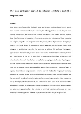 What can a participatory approach to research and evaluation contribute to the field of integrated care?