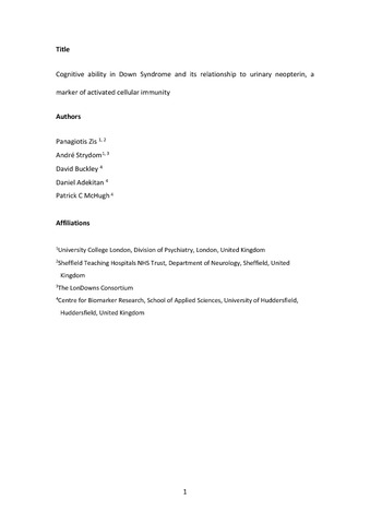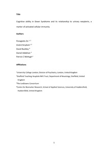 | Title: | Cognitive ability in Down syndrome and its relationship to urinary neopterin, a marker of activated cellular immunity |