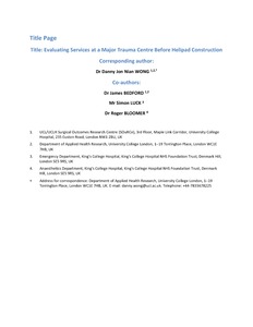 Title: | Evaluating Services at a Major Trauma Centre Before Helipad Construction |