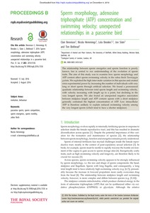 Title: | Sperm morphology, adenosine triphosphate (ATP) concentration and swimming velocity: unexpected relationships in a passerine bird |