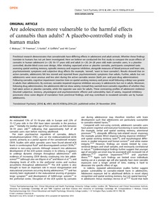 Title: | Are adolescents more vulnerable to the harmful effects of cannabis than adults? A placebo-controlled study in human males |