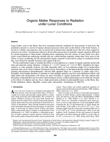 | Title: | Organic Matter Responses to Radiation under Lunar Conditions |