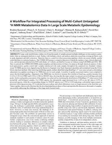 Workflow for Integrated Processing of Multicohort Untargeted 1H NMR Metabolomics Data in Large-Scale Metabolic Epidemiology.