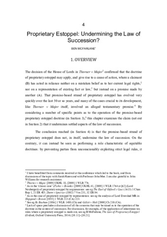 Title: | Proprietary Estoppel: Undermining the Law of Succession? |