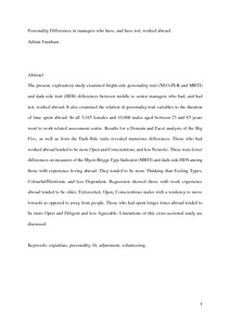 Title: | Personality differences in managers who have, and have not, worked abroad |