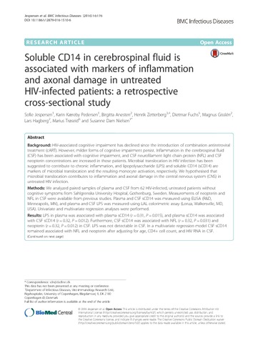 Soluble CD14 in cerebrospinal fluid is associated with markers of inflammation and axonal damage in untreated HIV-infected patients: a retrospective cross-sectional study.pdf - Published Version Download (560kB) | Preview |