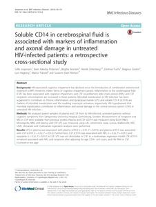 | Title: | Soluble CD14 in cerebrospinal fluid is associated with markers of inflammation and axonal damage in untreated HIV-infected patients: a retrospective cross-sectional study |