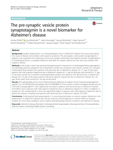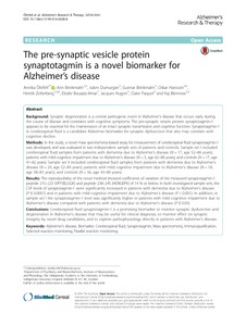 | Title: | The pre-synaptic vesicle protein synaptotagmin is a novel biomarker for Alzheimer's disease |