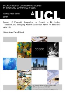 Title: | Impact of Financial Integration on Growth in Developing, Transition, and Emerging Market Economies: Quest for Threshold Analysis |
