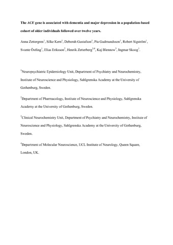 Zetterberg_the ACE gene_dementia_depression.pdf - Accepted Version Download (170kB) | Preview |