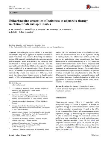 | Title: | Eslicarbazepine acetate: its effectiveness as adjunctive therapy in clinical trials and open studies |