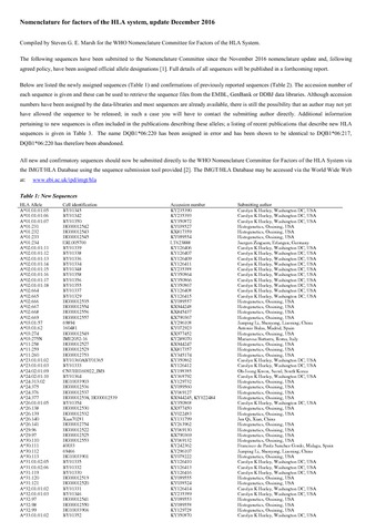 Title: | Nomenclature for factors of the HLA system, update December 2016 |