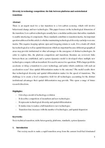 Title: | Diversity in technology competition: The link between platforms and sociotechnical transitions |