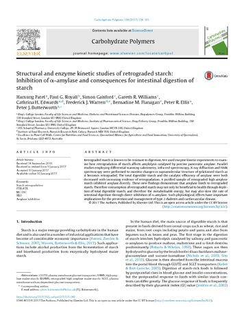 | Title: | Structural and enzyme kinetic studies of retrograded starch: Inhibition of α-amylase and consequences for intestinal digestion of starch |
