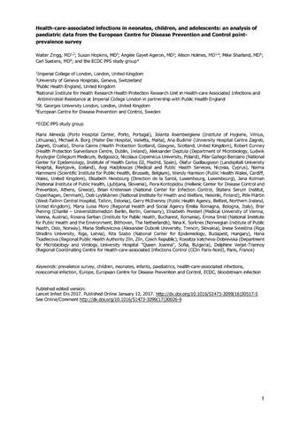 Title: | Health-care-associated infections in neonates, children, and adolescents: an analysis of paediatric data from the European Centre for Disease Prevention and Control point-prevalence survey |