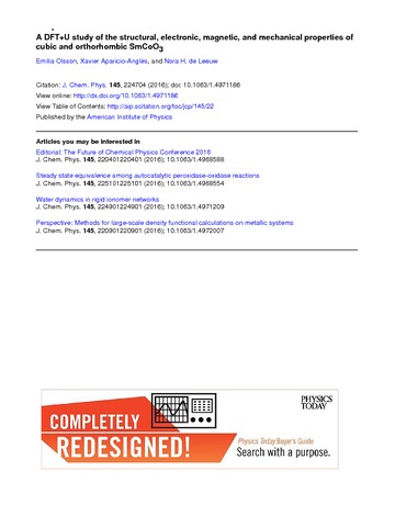 | Title: | A DFT plus U study of the structural, electronic, magnetic, and mechanical properties of cubic and orthorhombic SmCoO3 |