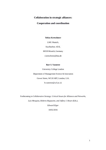 Title: | Collaboration in strategic alliances: Cooperation and coordination |