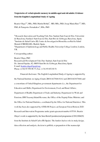Title: | Trajectories of Verbal Episodic Memory in Middle-Aged and Older Adults: Evidence from the English Longitudinal Study of Ageing. |