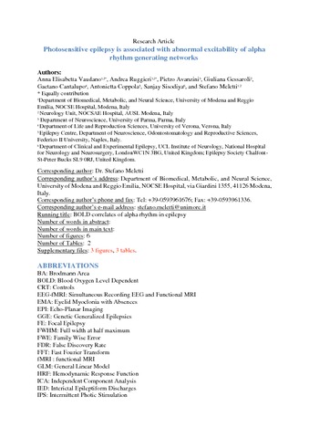 | Title: | Photosensitive epilepsy is associated with reduced inhibition of alpha rhythm generating networks |