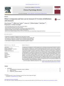 The importance of compassion iswidely recognized and it is receiving increasing research attention. Yet, there is lack of consensus on definition and a paucity of psychometrically robust measures of this construct.Without an agreed definition and adequatemeasures,we cannot study compassion,measure compassion or evaluatewhether interventions designed to enhance compassion are effective. In response, this paper proposes a definition of compassion and offers a systematic review of self- and observer-rated measures. Following consolidation of existing definitions, we propose that compassion consists of five elements: recognizing suffering, understanding the universality of human suffering, feeling for the person suffering, tolerating uncomfortable feelings, and motivation to act/acting to alleviate suffering. Three databases were searched (Web of Science, PsycInfo, and Medline) and nine measures included and rated for quality. Quality ratings ranged from 2 to 7 out of 14 with lowratings due to poor internal consistency for subscales, insufficient evidence for factor structure and/or failure to examine floor/ceiling effects, test–retest reliability, and discriminant validity. We call our five-element definition, and if supported, the development of a measure of compassion based on this operational definition, and which demonstrates adequate psychometric properties.
