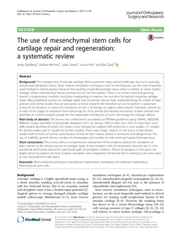 Title: | The use of mesenchymal stem cells for cartilage repair and regeneration: a systematic review |