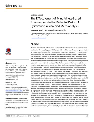 Title: | The Effectiveness of Mindfulness-Based Interventions in the Perinatal Period: A Systematic Review and Meta-Analysis |