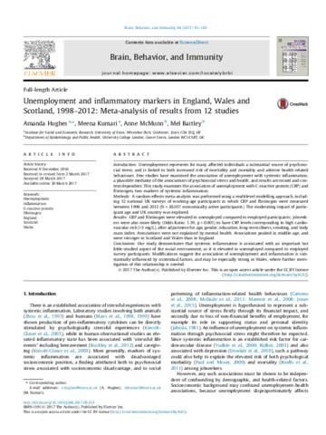 Title: | Unemployment and inflammatory markers in England, Wales and Scotland, 1998-2012: Meta-analysis of results from 12 studies |