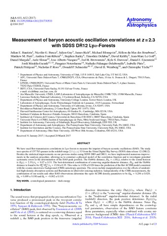 Title: | Measurement of baryon acoustic oscillation correlations at z = 2.3 with SDSS DR12 Ly α-Forests |