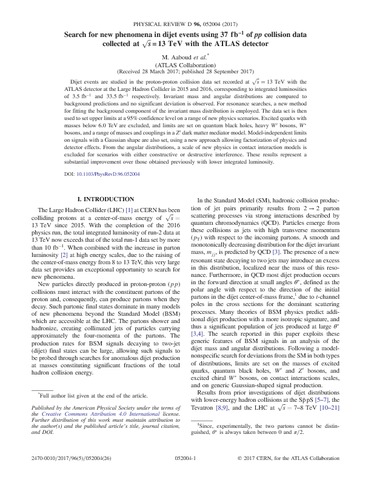 Title: | Search for new phenomena in dijet events using 37 fb(-1) of pp collision data collected at root s=13 TeV with the ATLAS detector |