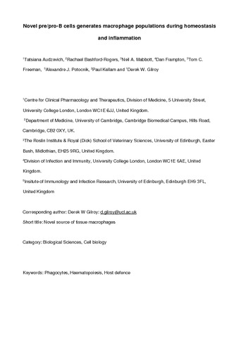 Gilroy-D_pro-B cells generate macrophage populations_Manuscript.pdf - Accepted Version Available under License : See the attached licence file. Download (531kB) | Preview |