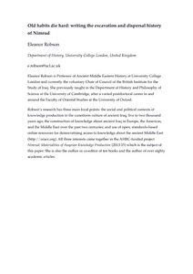 Title: | Old habits die hard: writing the excavation and dispersal history of Nimrud |