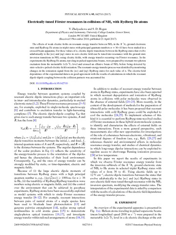 Title: | Electrically tuned Forster resonances in collisions of NH3 with Rydberg He atoms |
