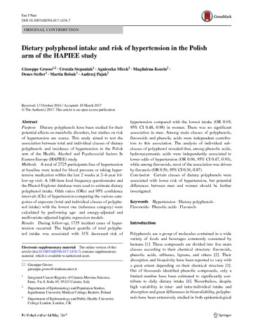 Title: | Dietary polyphenol intake and risk of hypertension in the Polish arm of the HAPIEE study |