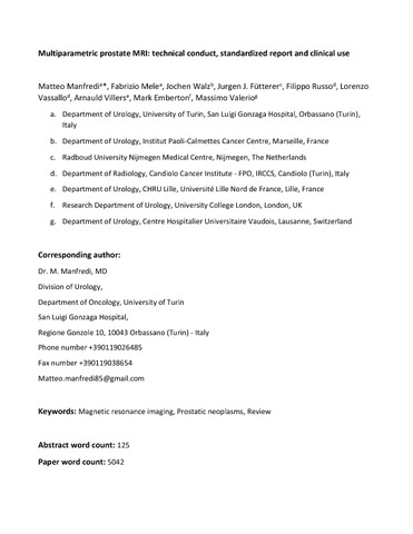 Title: | Multiparametric prostate MRI: technical conduct, standardized report and clinical use. A narrative review |