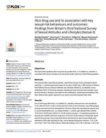 Illicit drug use and its association with key sexual risk behaviours and outcomes: Findings from Britain's third National Survey of Sexual Attitudes and Lifestyles (Natsal-3).pdf - Published Version Download (1MB) | Preview |