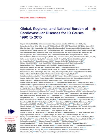 Title: | Global, Regional, and National Burden of Cardiovascular Diseases for 10 Causes, 1990 to 2015 |