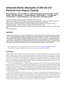 Title: | Enhanced Atomic Desorption of 209 and 210 Francium from Organic Coating |