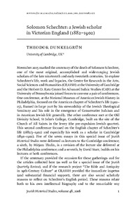 Title: | Solomon Schechter: a Jewish scholar in Victorian England (1882–1902) |