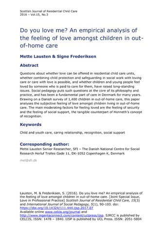 Title: | Do you love me? An empirical analysis of the feeling of love amongst children in out-of-home care |