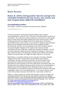 Title: | Brown, B. (2015). Daring greatly: How the courage to be vulnerable transforms the way we live, love, parent, and lead. Penguin books, ISBN 978-1592408412. |
