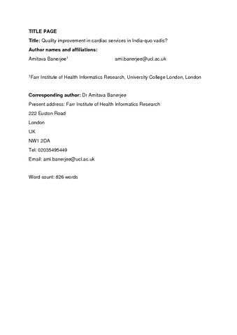 Title: | Quality Improvement in Cardiac Services in India Quo Vadis? |