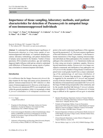 Importance of tissue sampling, laboratory methods, and patient characteristics for detection of Pneumocystis in autopsied lungs of non-immunosuppressed individuals.