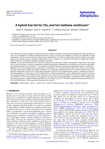 Title: | A hybrid line list for CH4 and hot methane continuum |