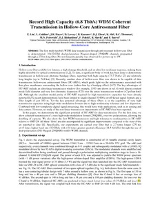 Title: | Record High Capacity (6.8 Tbit/s) WDM Coherent Transmission in Hollow-Core Antiresonant Fiber |