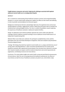 Title: | Caught between compassion and control: exploring the challenges associated with inpatient adolescent mental healthcare in an independent hospital |