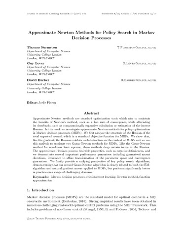 Title: | Approximate Newton Methods for Policy Search in Markov Decision Processes |
