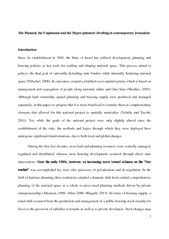 | Title: | The planned, the unplanned and the hyper-planned: dwelling in contemporary Jerusalem |