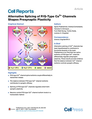 Alternative Splicing of P/Q-Type Ca2+ Channels Shapes Presynaptic Plasticity.