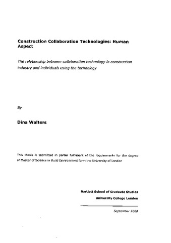 An increasingly significant proportion of the construction industry has come to adopt collaboration technologies in recent years. Nevertheless, the technology is still not being used by the entire industry on every project to the full capacity. There remains a significant number of organisations that would benefit from using such technology but are reluctant to employ it. As it is often the case with newer technology, a major barrier relates to the doubts that many potential users have regarding the practical usefulness of the technology. These people may be highly skeptical about what such technology could do for them, what exactly the benefits will be and whether the benefits can be quantified. This report attempts to find the reasons for resistance to use collaboration technology on an individual level as well on the industry level in general, and suggest possible ways to overcome the resistance, thus making benefits of successfully implemented collaboration technology available to every construction project.