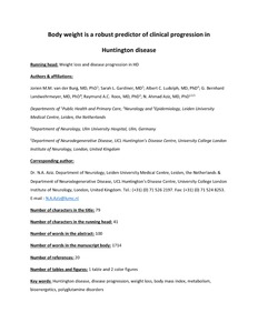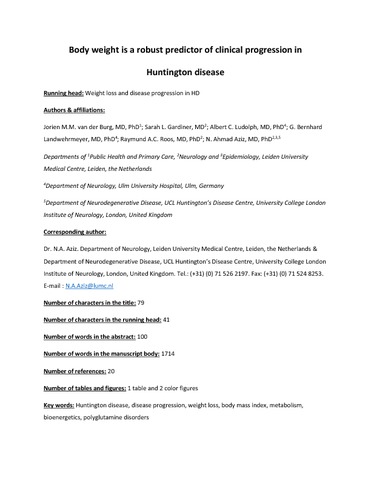 Title: | Body weight is a robust predictor of clinical progression in Huntington disease |
